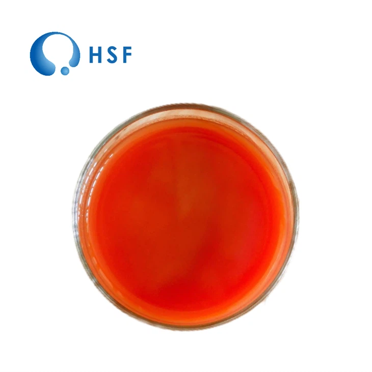 HSFBeta karoténový olej zavesenieje tmavo červená až červeno -hnedá mastná tekutina pripravená zmiešaním -karotén z Blakeslea trispora s rastlinným olejom .